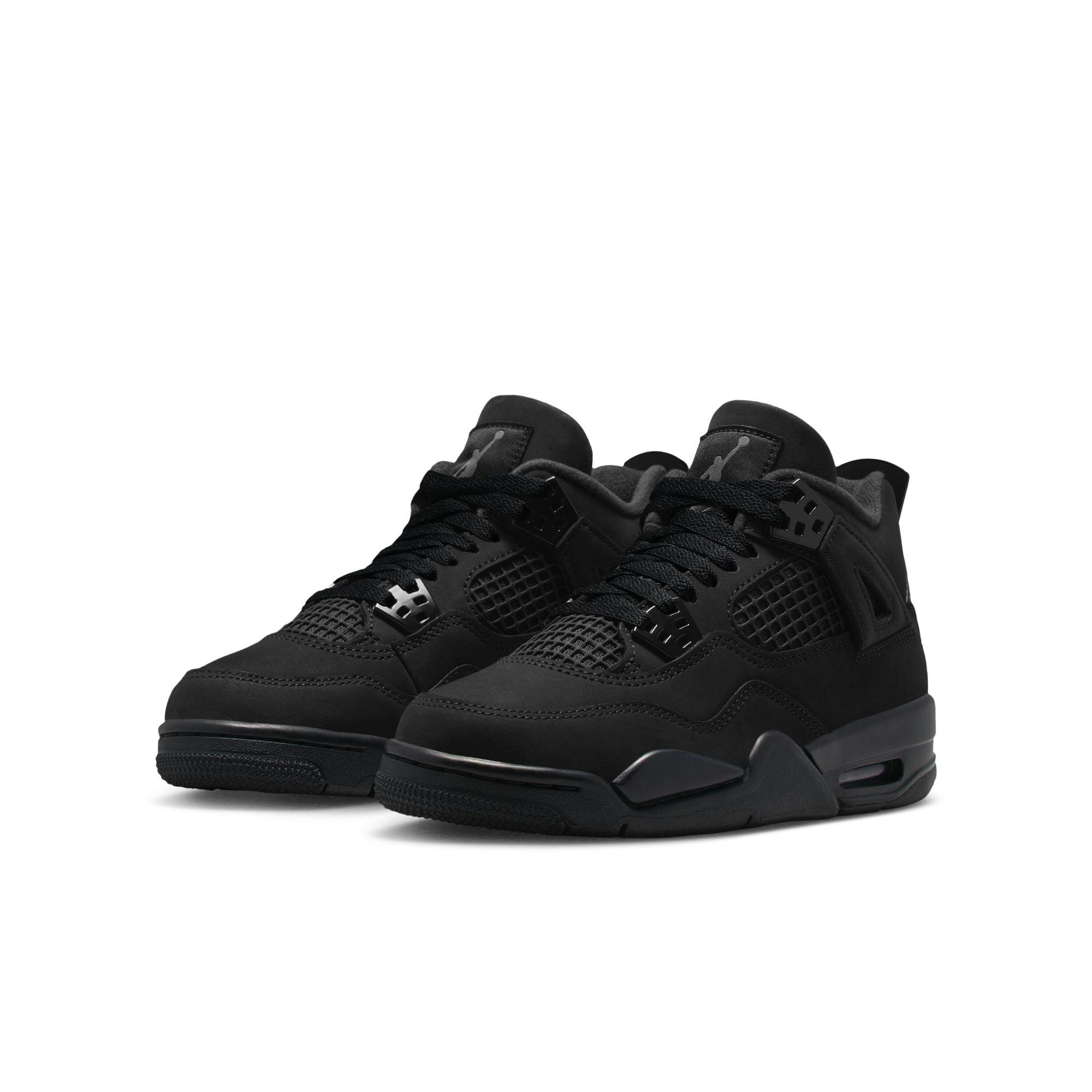 The legendary “Black Cat” AJ4 returns with a premium feel built for everyday style. Crafted with a mix of real and synthetic leather, this kids’ version brings durability, structure, and the iconic AJ4 attitude. Plush Max Air cushioning and soft foam underfoot keep every step comfortable, while the rubber outsole delivers reliable traction. Sleek, bold, and effortlessly clean—this is standout style for the next generation. Real + synthetic leather upper for durability and support Max Air cushioning for soft, responsive comfort Lightweight foam midsole for all-day wear Rubber outsole for long-lasting traction Classic AJ4 detailing in the all-black “Black Cat” design