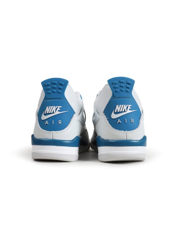 The 2024 edition of the Air Jordan 4 Retro ‘Military Blue’ brings back a coveted OG colorway of the legacy silhouette. Smooth off-white leather is utilized on the upper, featuring quarter panel netting and a tonal nubuck forefoot overlay. A vibrant blue Jumpman logo adorns the woven tongue tag, matching the molded eyelets and a back tab marked with Nike Air branding. The sneaker rides on a lightweight polyurethane midsole with encapsulated Air-sole cushioning in the forefoot and a visible Air bag in the heel.