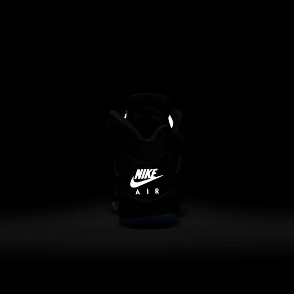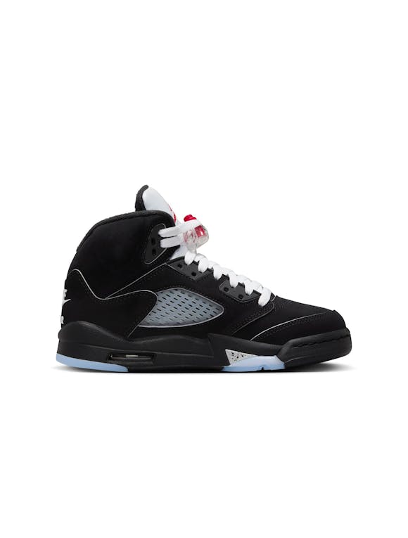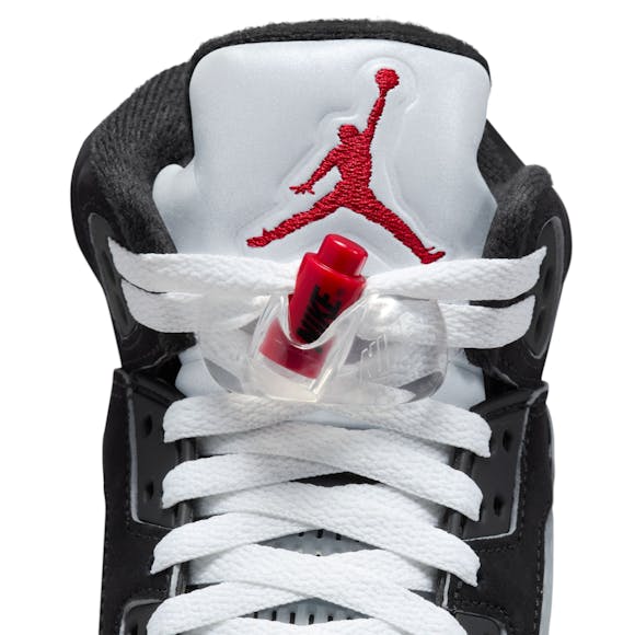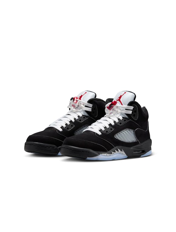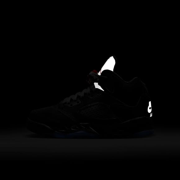 Air Jordan 5 Retro "Reimagined"Big Kids' ShoesThe AJ5 is unmistakable. Fierce zig-zag details on the midsole, peekaboo mesh panels and iconic lace locks make for standout style. Velvety nubuck leather and metallic accents give this pair a premium look and feel. Real and synthetic leather works with textiles in the upper to offer durability and structure.Plush and comfortable, Max Air cushioning has just the right amount of support.Foam midsole helps add lightweight cushioning.Rubber in the outsole helps provide durable traction.Lace lock helps you secure your fit fast. More Details Classic laces 2 sets of laces Foam midsole Rubber outsole