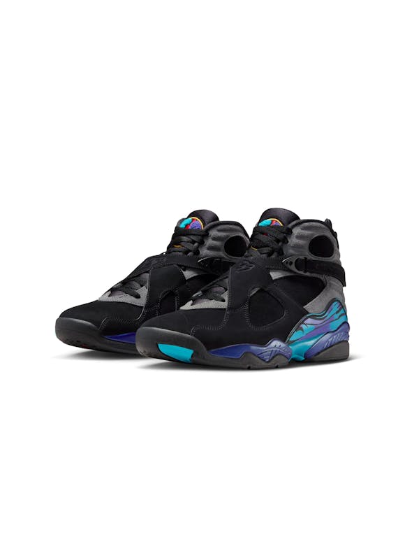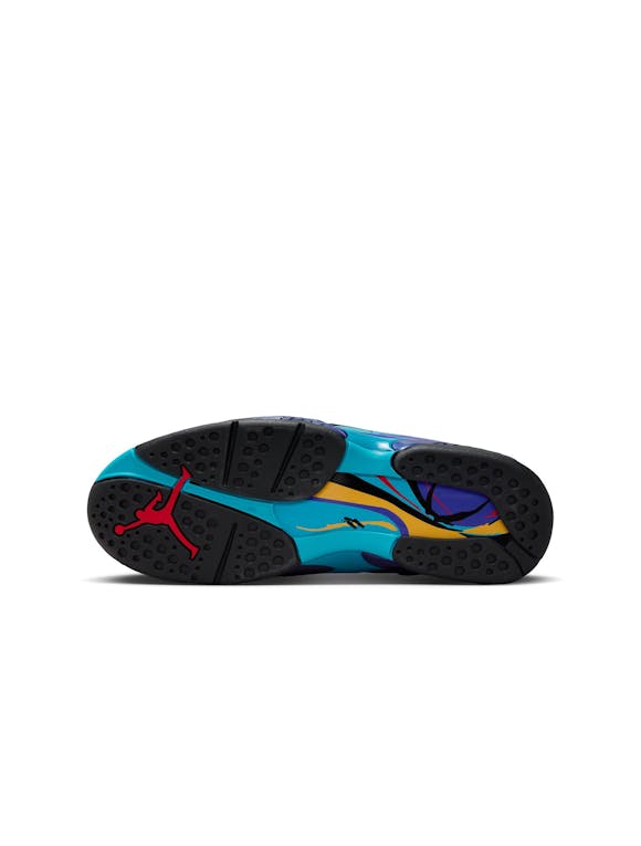 The Air Jordan 8 Retro "Aqua" returns for big kids, bringing back a classic from MJ’s 1992–93 championship season. Featuring signature mid-foot cross straps, bold color accents, and durable construction, this retro release delivers the iconic look with all-day comfort and support. Classic "Aqua" colorway Mid-foot cross straps for a secure fit Nike Air cushioning in the heel for responsive comfort Leather and synthetic upper for durability and support Rubber outsole with circular traction pattern for grip Iconic molded details for retro appeal