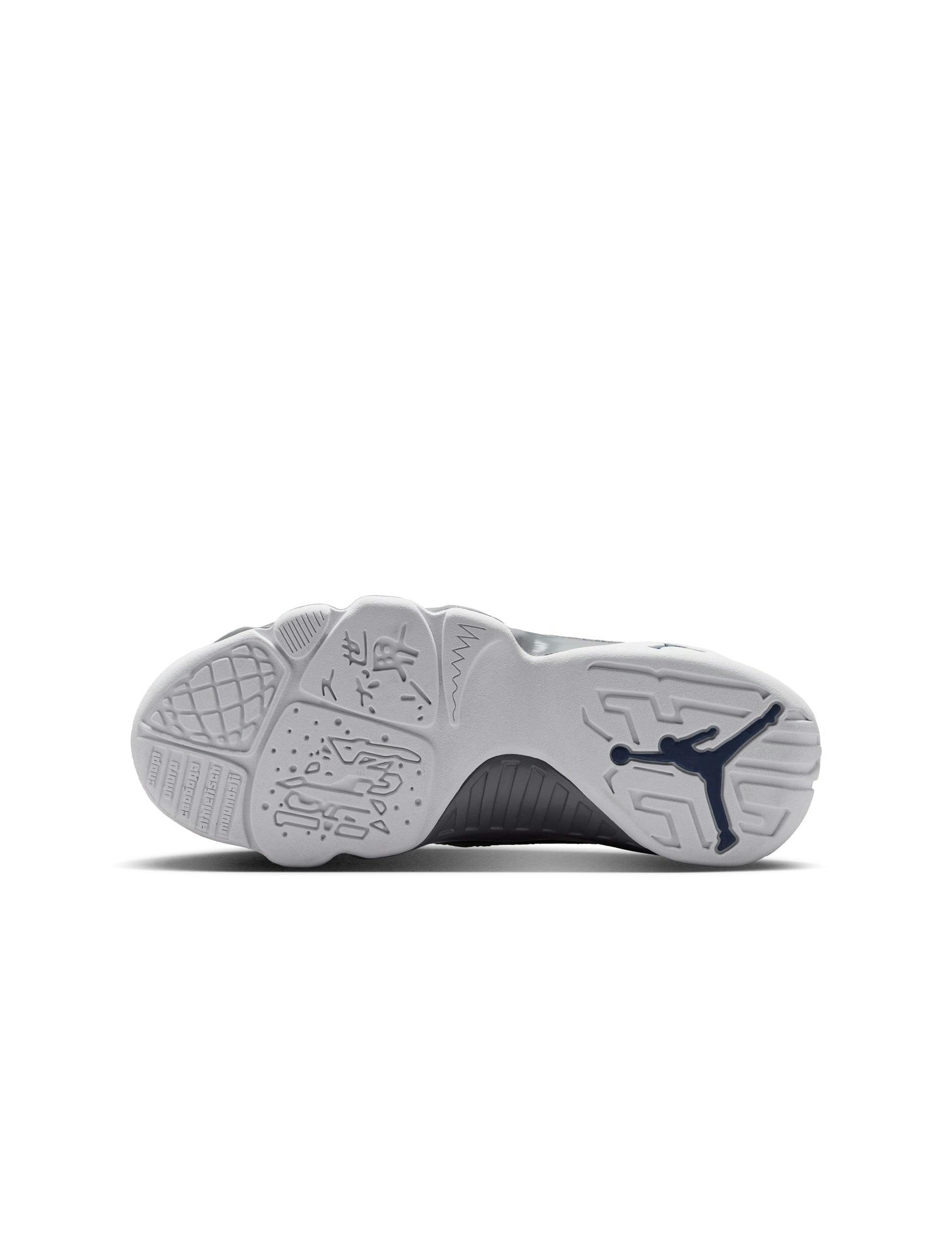 The Air Jordan 9 Retro is back and ready to make history again. Originally released when MJ stepped away from the hardwood for the baseball diamond, the AJ9 delivers a legendary look with everyday comfort. Featuring a clean leather upper, “one-pull” lacing system, and the signature jagged midsole, this classic is built for kids who want timeless Jordan style. Real and synthetic leather upper for durability and structure Nike Air cushioning helps absorb impact with every step Rubber outsole provides durable traction Classic laces Pull tab for easy on and off