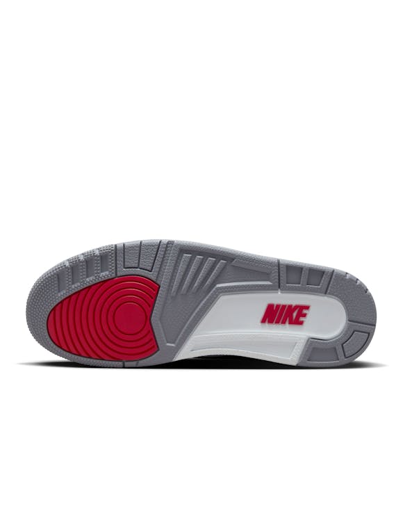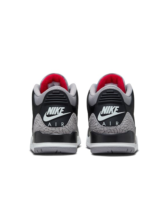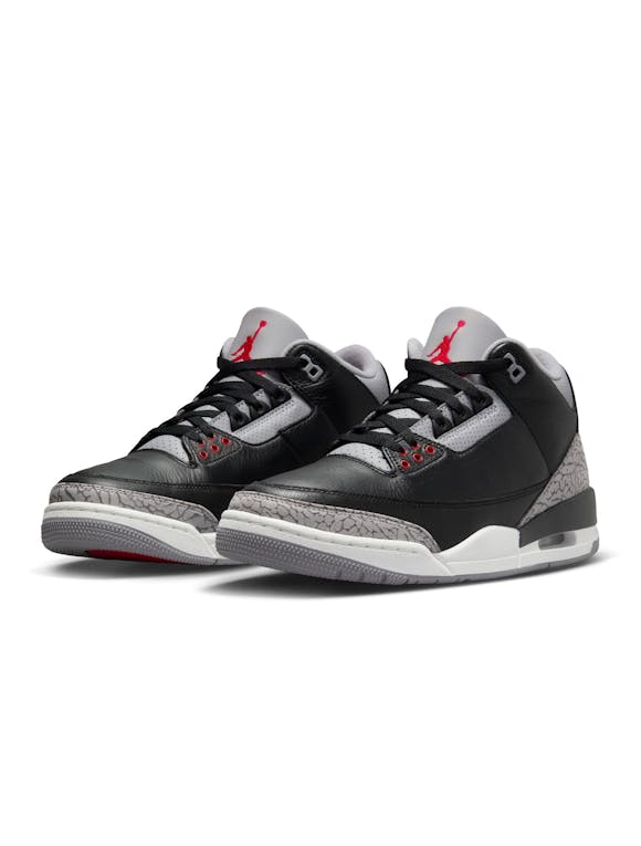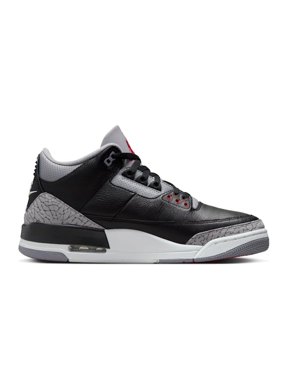 Experience classic style with the Air Jordan 3 Retro Men's Shoes. This iconic design features quality leather with a luxurious elephant print texture, complemented by fire-red details for a bold look. The comfortable collar and flexible foam midsole offer support, while Air-Sole units in the heel and forefoot provide lightweight cushioning. With a solid rubber outsole for reliable traction, these shoes are perfect for everyday wear and effortlessly elevate any outfit.