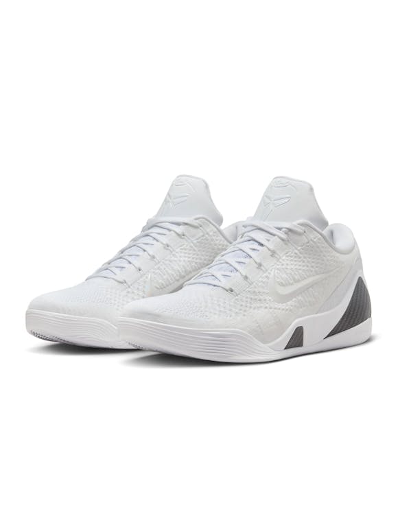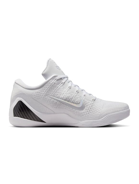 The Nike Kobe 9 Elite Low Protro "Halo" boasts a pure, all-white color scheme that exudes a sense of timeless elegance. With its advanced Flyknit technology, the sneaker provides a lightweight and breathable fit. The addition of an iridescent Swoosh adds a subtle yet eye-catching touch, enhancing the overall aesthetic of the shoe.