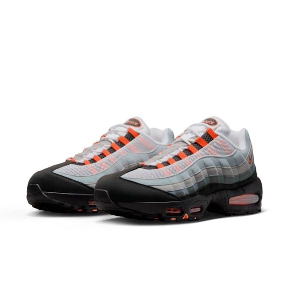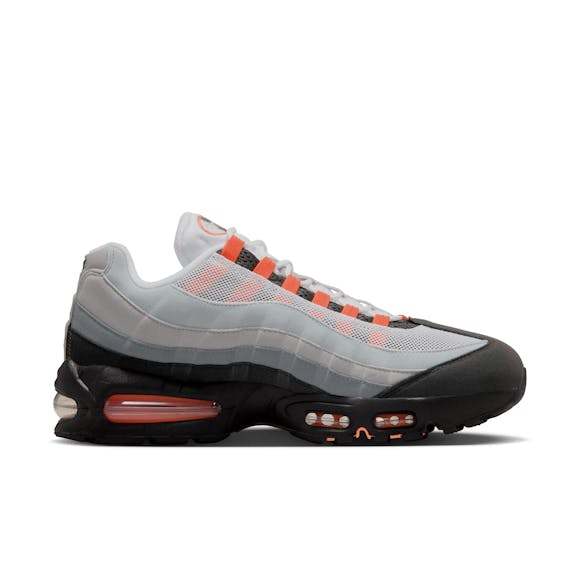 Inspired by the human anatomy and '90s track style, the Nike Air Max 95 OG delivers iconic design and comfort. Wavy panels represent muscle fibers, while visible Max Air units in the heel and forefoot provide lightweight, responsive cushioning. The layered synthetic leather and textile upper adds durability and depth, and flex grooves in the sole promote natural movement with every step. Synthetic leather and textile upper for structure and durability Visible Max Air units offer lightweight comfort Flex grooves in midsole and outsole for natural mobility Anatomical design inspired by the spine, muscles, and ribs Rubber outsole provides long-lasting traction