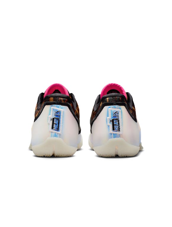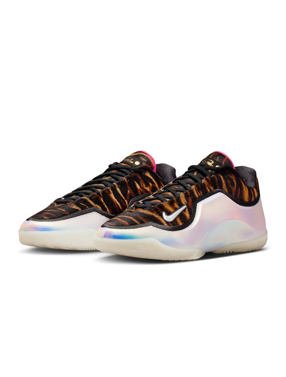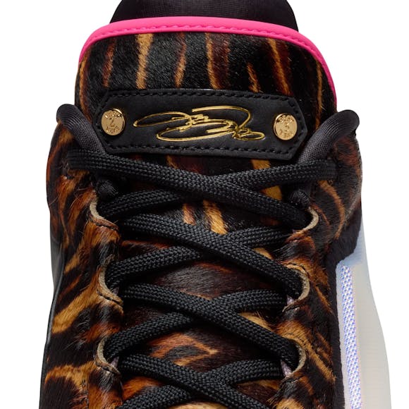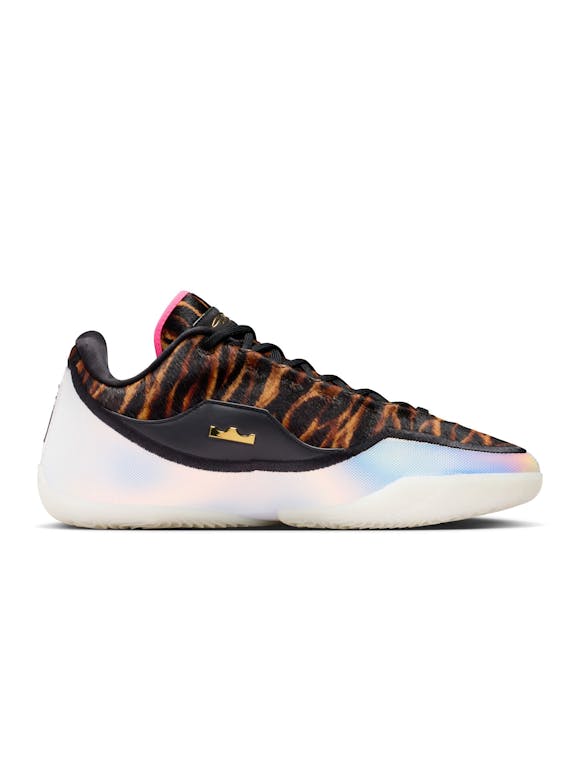 The LeBron XXIII returns with next-generation speed, bounce, and swagger inspired by Bron’s must-see Miami Heat era. A full-length ZoomX drop-in midsole delivers unreal responsiveness, while a carbon fiber plate adds stability and quick-strike acceleration. The engineered jacquard upper and plush bootie lining keep the shoe lightweight and breathable, and the crown-shaped containment system locks you in during explosive moves. Finished with a bold leopard print and iridescent details, this colorway brings Heat-era flair to the modern game. Full-length ZoomX foam drop-in for elite energy return Carbon fiber plate for stability and speed on cuts Engineered jacquard upper for lightweight breathability Crown-shaped containment system for lockdown during aggressive play Premium bootie lining for lightweight comfort Sticky, multi-directional traction for precise court feel Leopard print + iridescent accents inspired by Bron’s Miami era